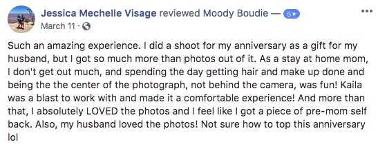 "Super fun and easy to work with. She did a great job of instructing on poses and outfits that made me feel/look my best. I highly recommend booking a session. I was blown away by the images she captured and feel so beautiful when I see them. Every woman deserves to feel that way about herself!"